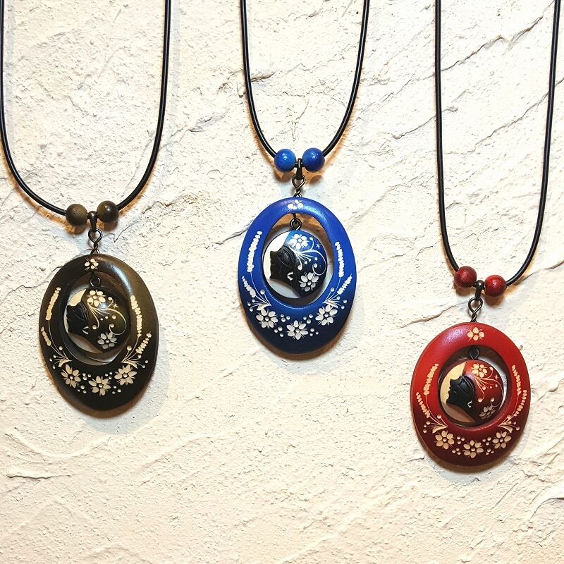 北海道産の木(エリマキ、マユミなど)で作った木彫りのペンダントです。